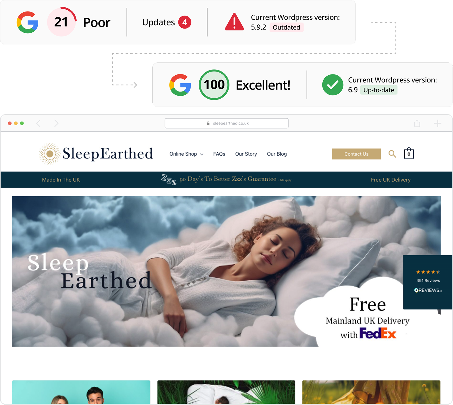 Sleep Earthed website speed before and after working with isev